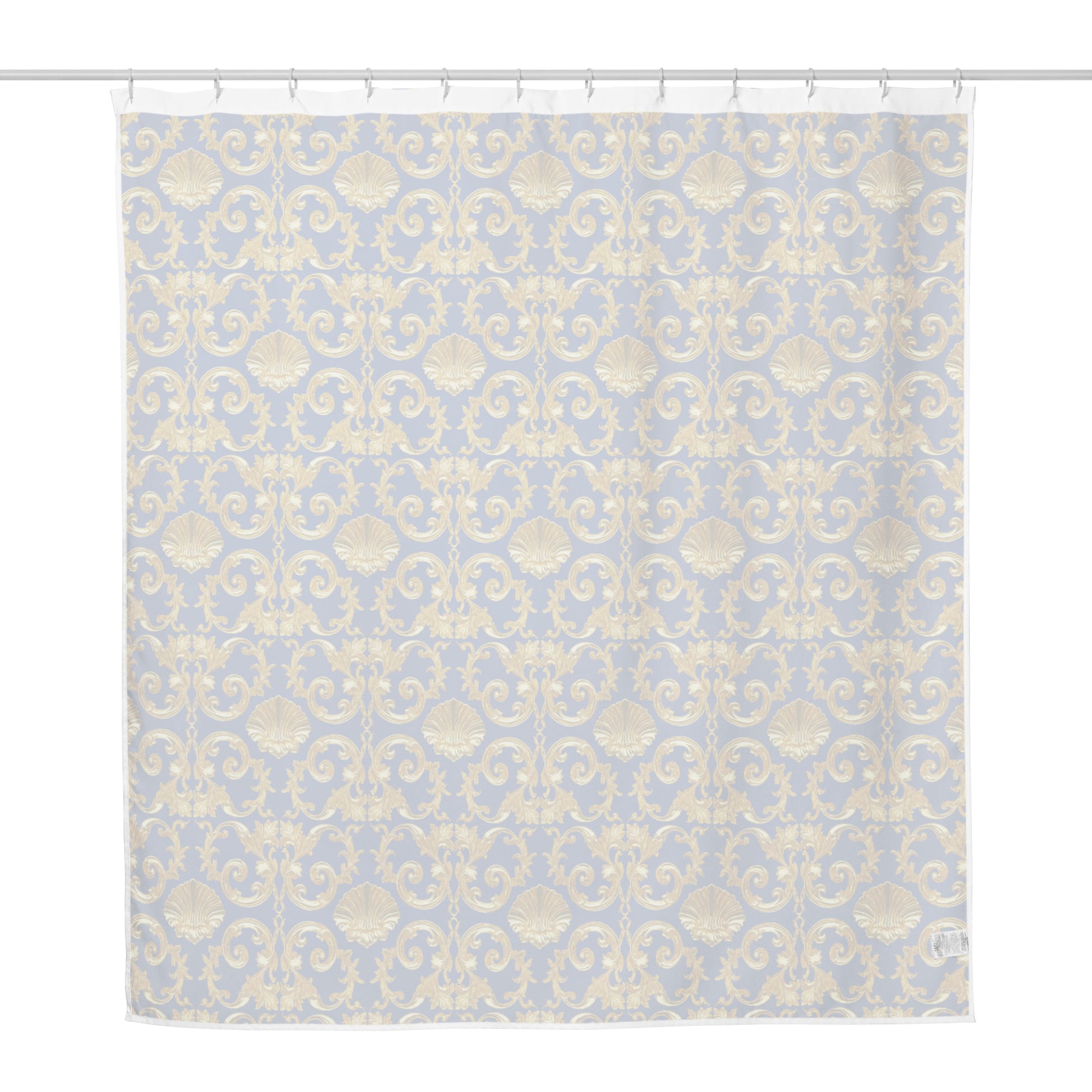 Baroque Gold Shell & Acanthus Leaf Motif on Royal Sapphire Blue Shower curtain | Bach Baroque Harmony Collection