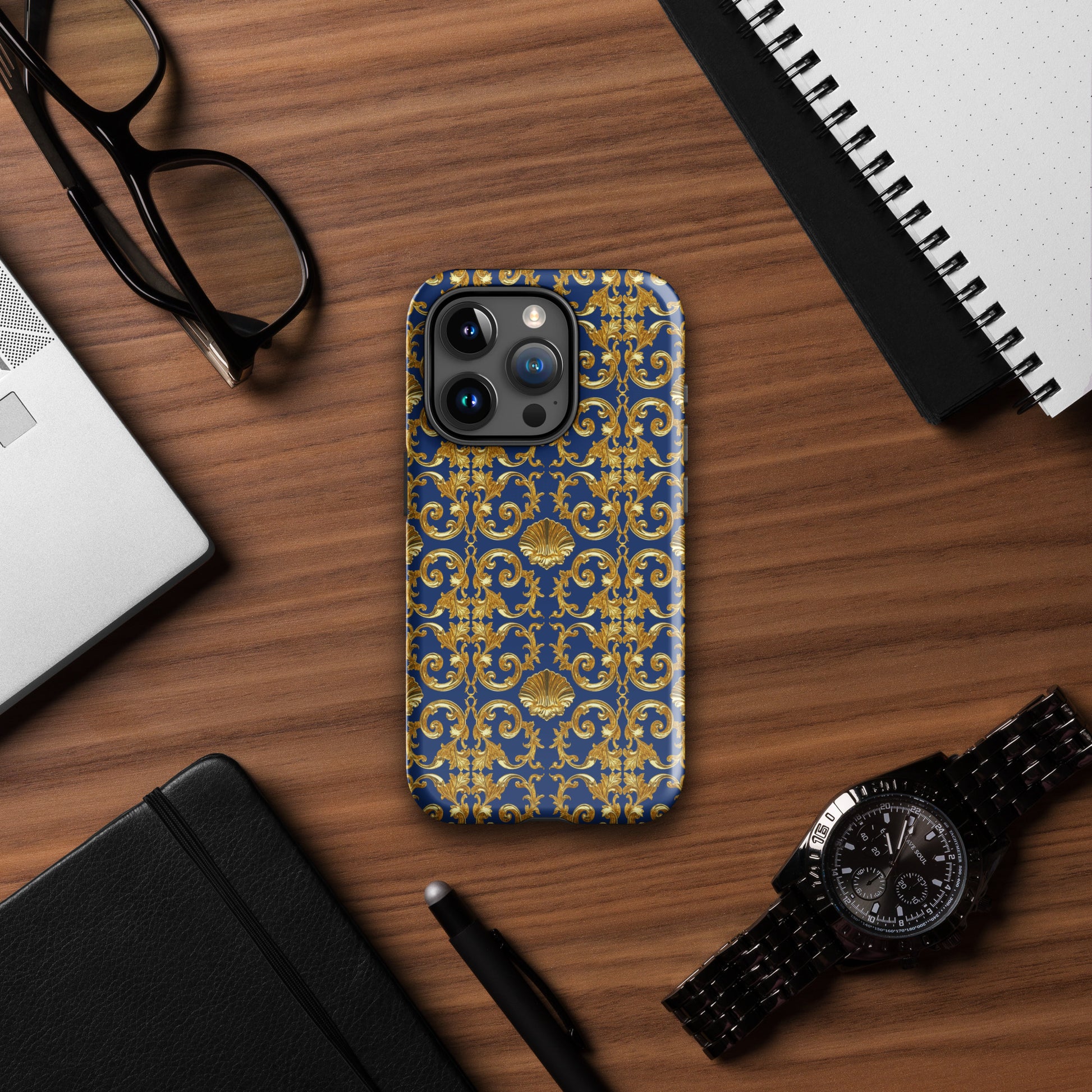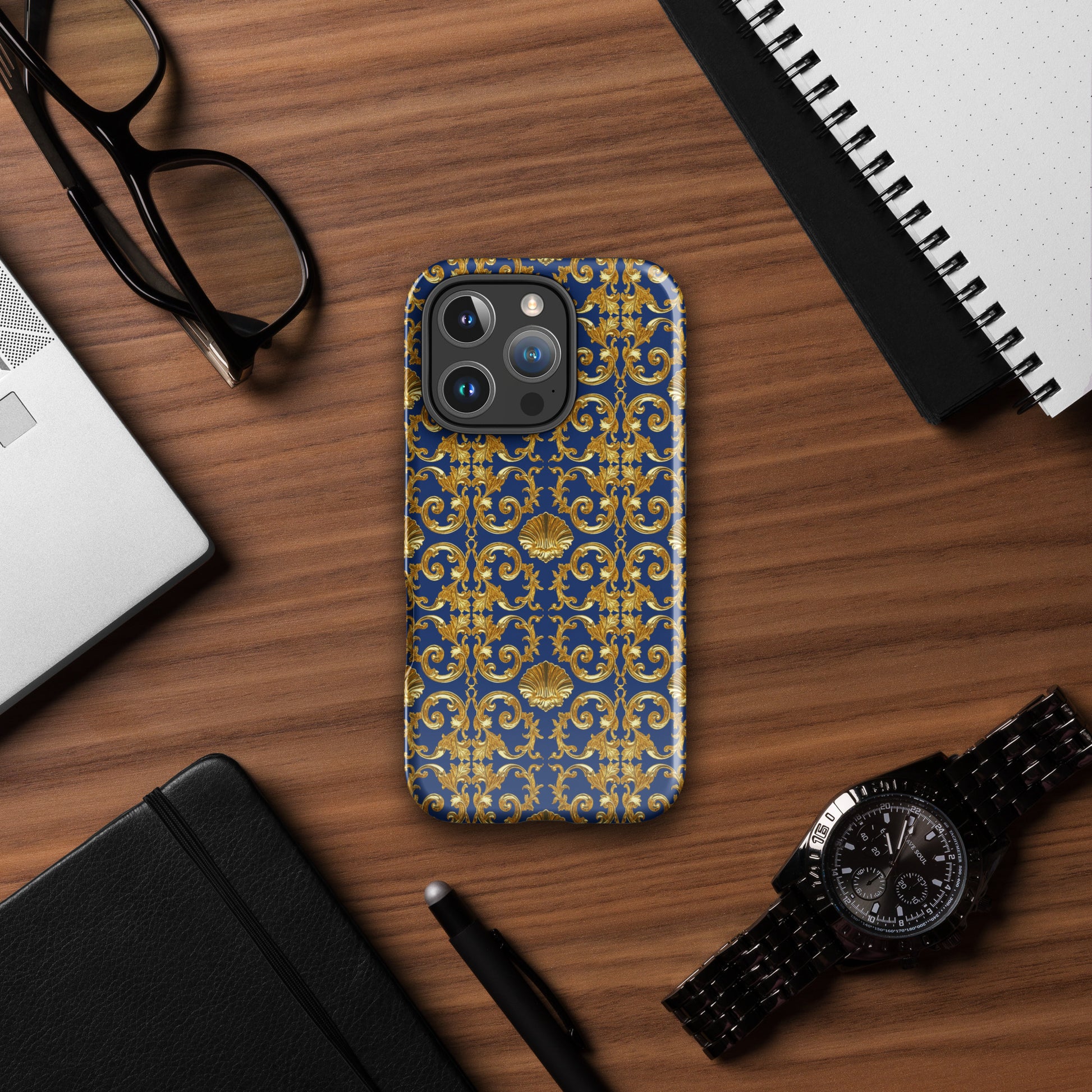 Gold Motif & Royal Sapphire Blue Tough Case for iPhone® | Bach Baroque Harmony Collection