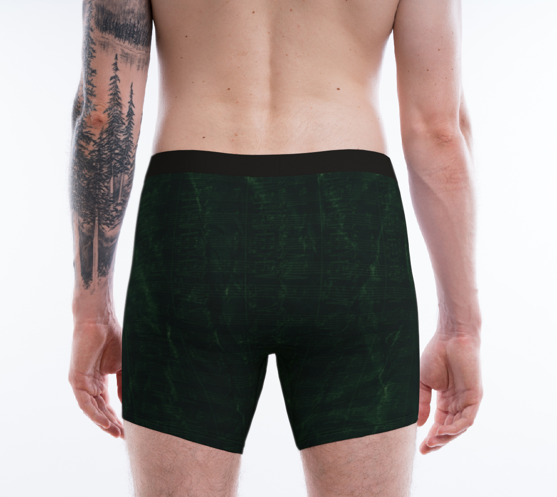 Experience refined comfort and a touch of stage-worthy elegance with our Maestro Edition Premium Symphonic Emerald Men's Long Boxer Briefs. Designed for those who prefer a longer silhouette, this Symphonic Emerald version blends performance, artistry, and all-day wearability.
