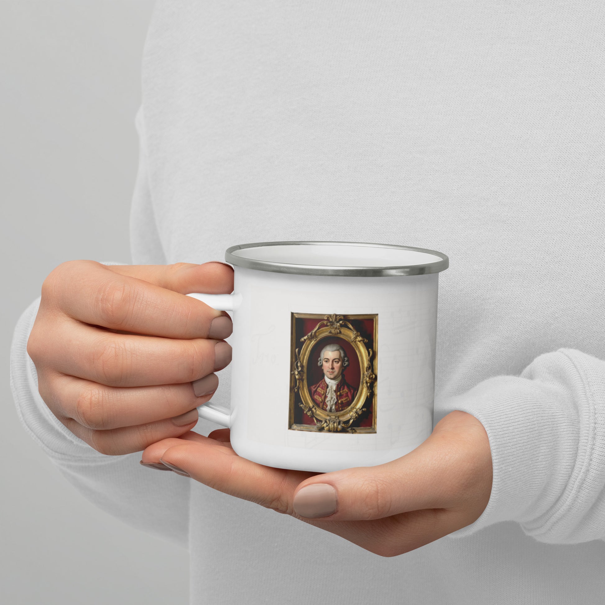 MOZART Museum Framed Portrait & Quote 12oz Enamel Mug | Classical Composer Quotes